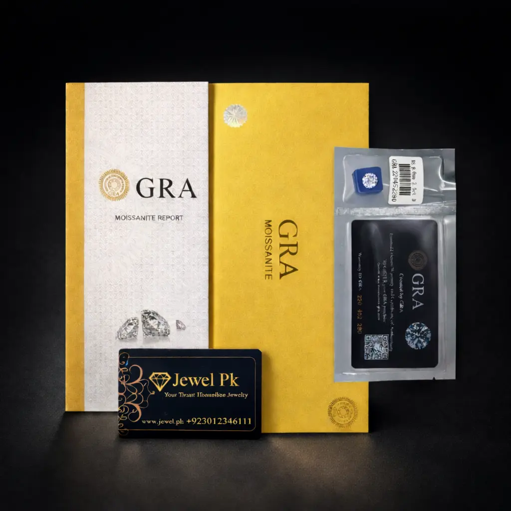 Each stone includes GRA (Gemological Research Association) certification, verifying its authenticity, quality, and specifications. This guarantees you receive a premium-grade moissanite with consistent brilliance and craftsmanship.