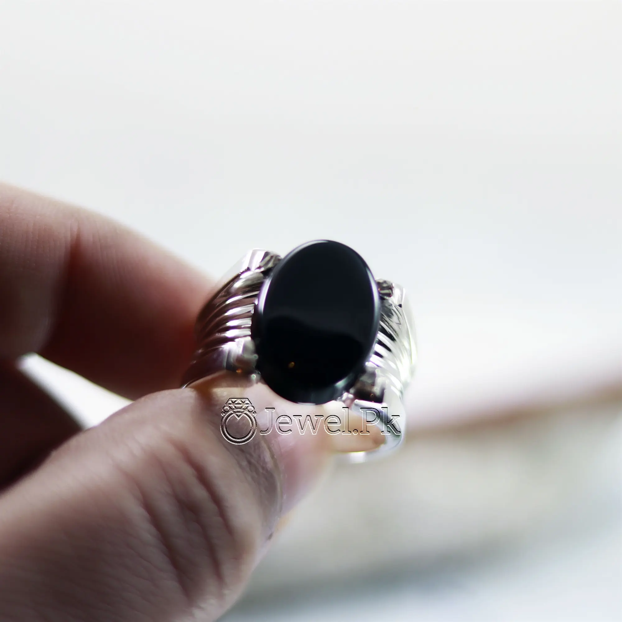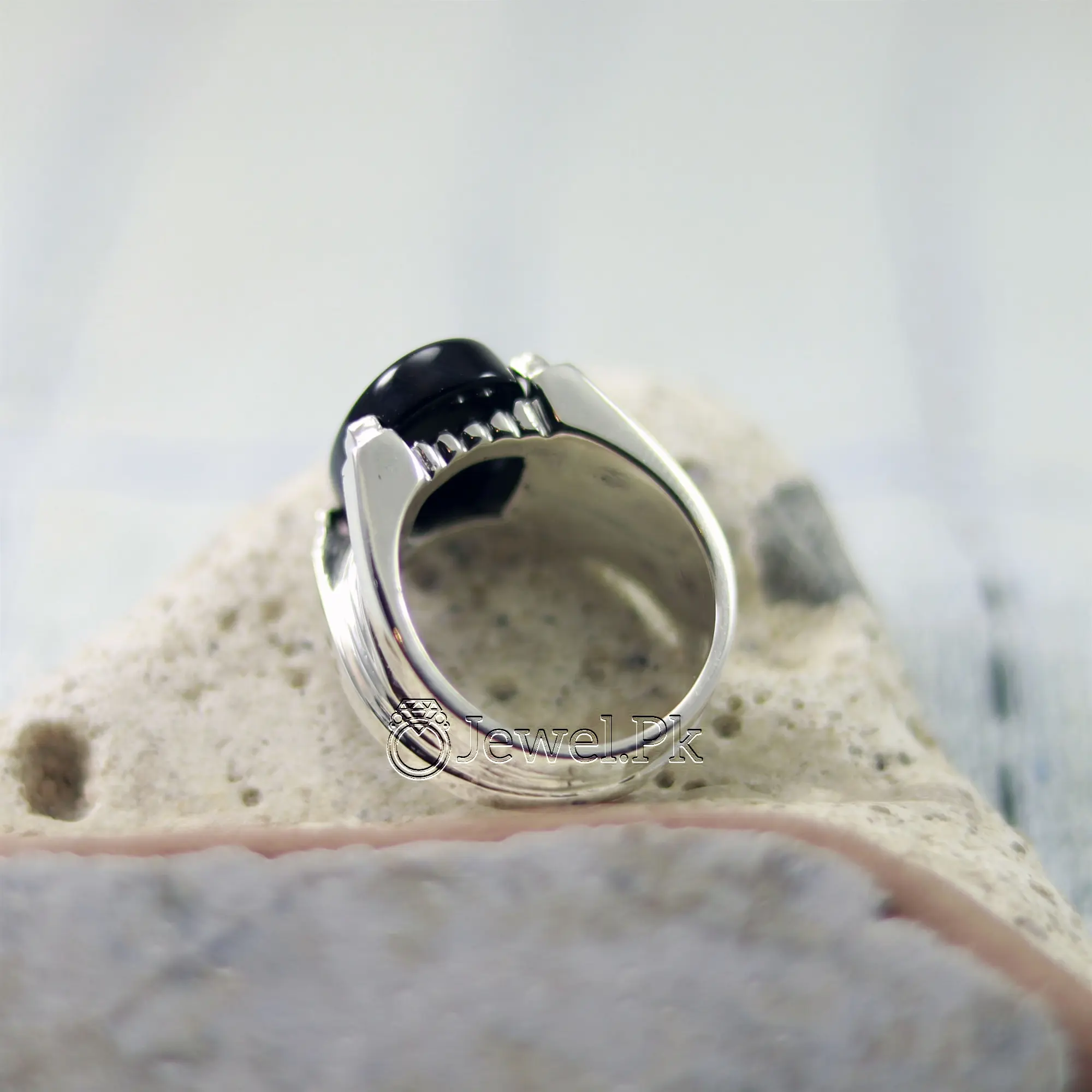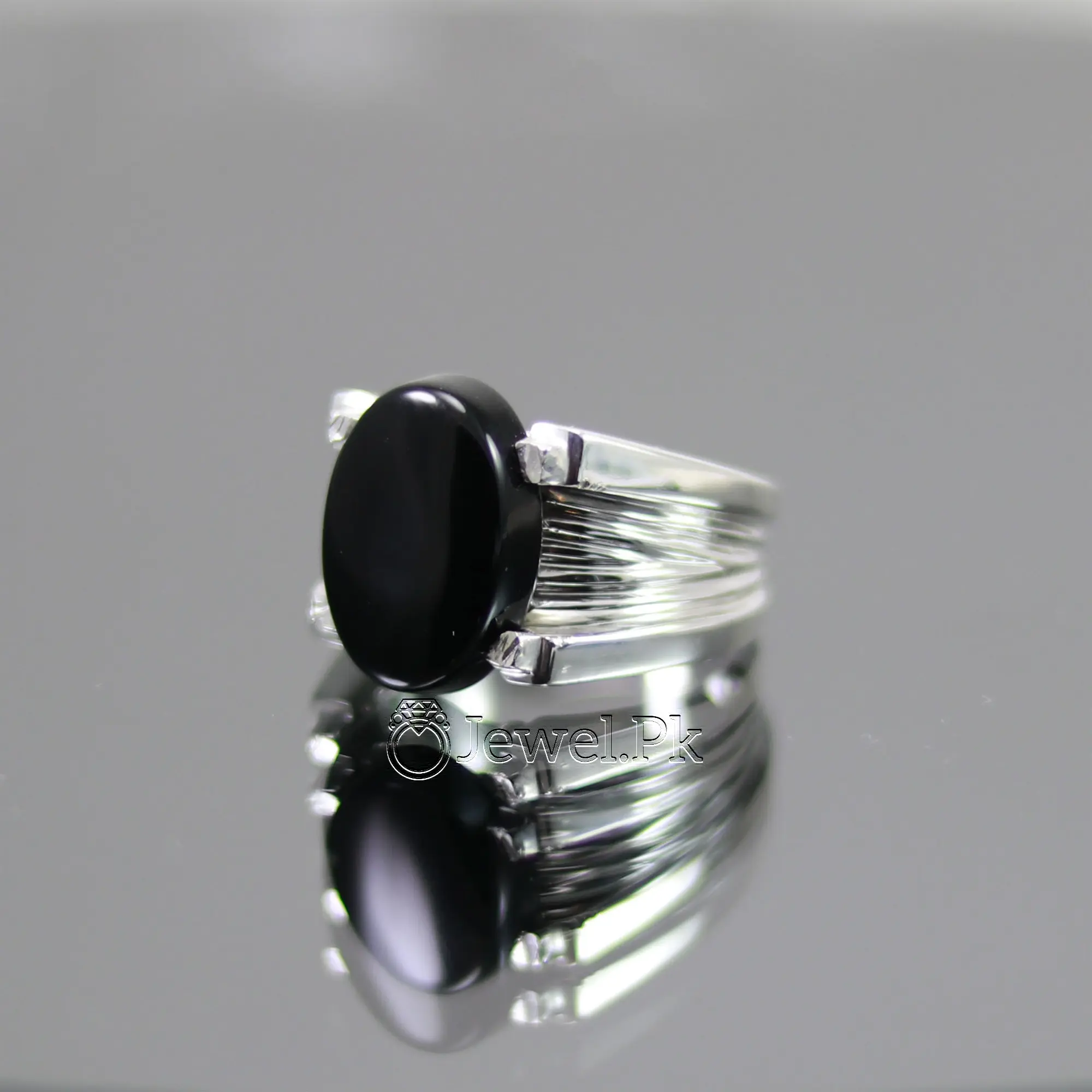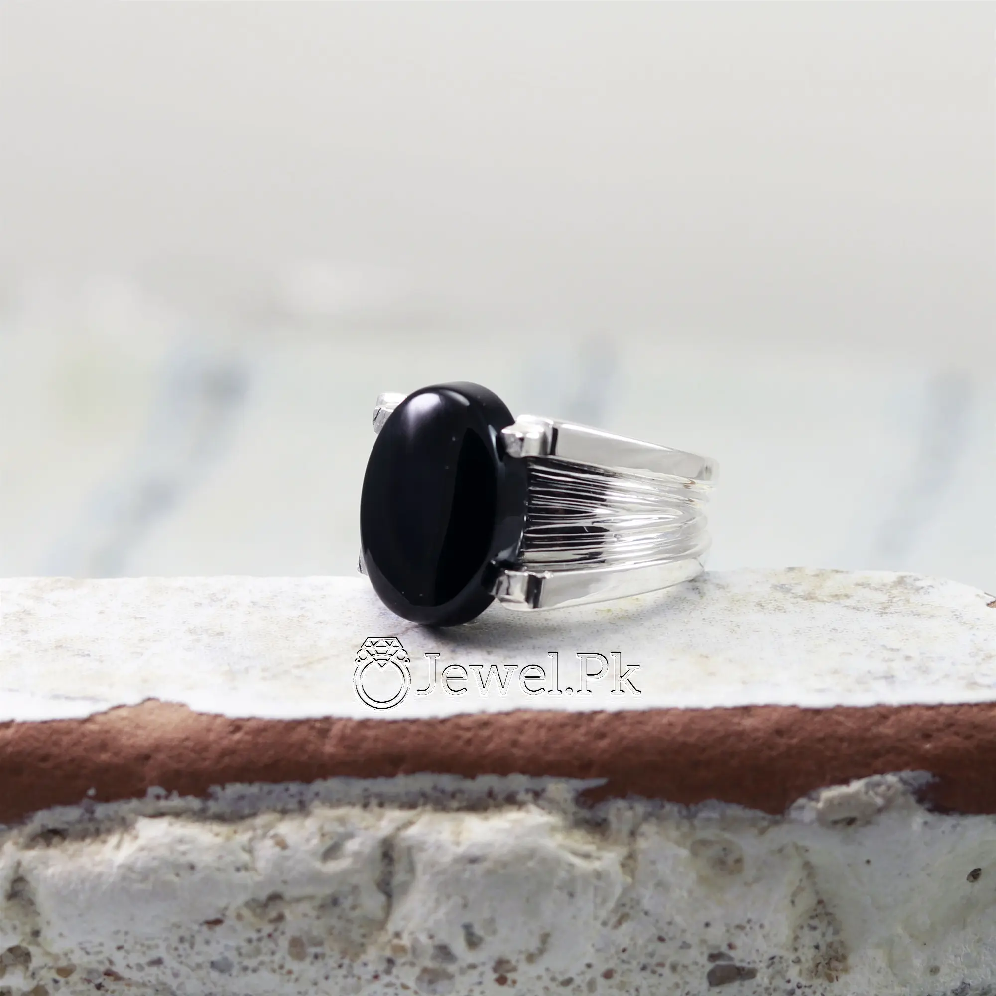 This stunning Black Agate Ring is made from high quality 925 sterling silver and features a unique black aqeeq gemstone. The black agate gemstone is known for its protective and grounding properties, making it a perfect accessory for daily wear. The 925 silver band is polished to a mirror-like finish, adding an elegant touch to this ring. This ring is perfect for those who appreciate unique, high quality jewelry. It would make a great gift for a loved one or a special treat for yourself. Wear it to add a touch of sophistication to any outfit.